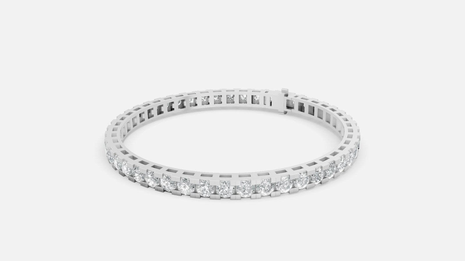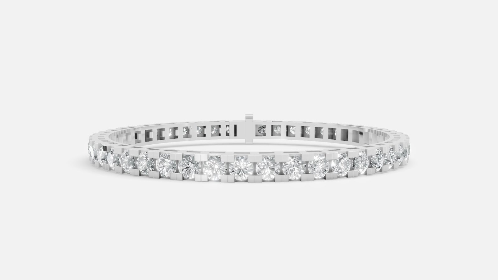• This eye-catching tennis bracelet embellishes the wrist with of shimmering lab grown diamonds individually set in lustrous links.