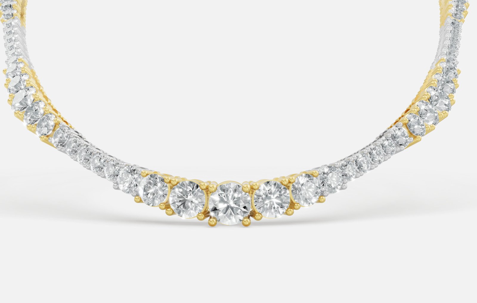 • The diamonds reflect the most light and glimmer. The studded diamond shines with maximum shimmer. Each of our lab-grown diamonds is conflict-free, making every single stone hand-picked. This diamond necklace is a unique addition to your statement jewellery collection. Each stone we handpick is made with love.